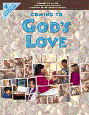 Coming to God’s Love is written to help fourth graders grow in living as friends of Jesus Christ and as members of his Church. Coming to God’s Love tells how the commandments of God and the teachings of Jesus Christ help us to live happily and freely as God’s people. It teaches us that we share the responsibility for building the kingdom, or reign, of God in our world today. Every time they use this book, the young people are encouraged to ask the Holy Spirit to help them: